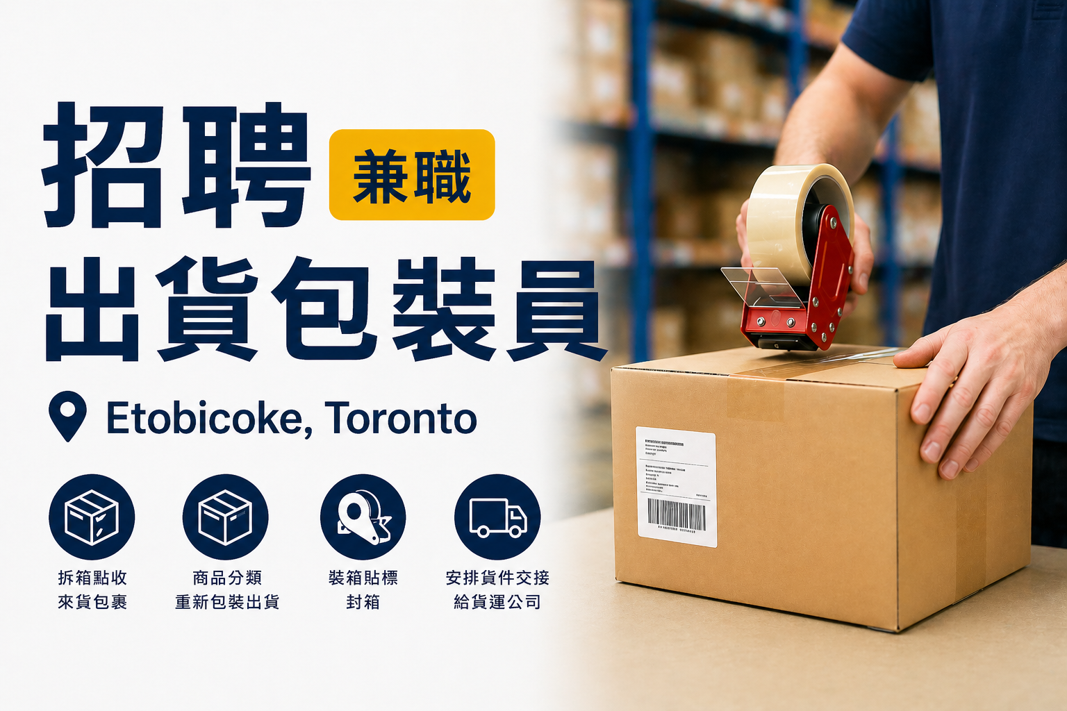 【招聘|兼職出貨包裝員(Etobicoke)】