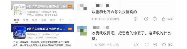 救护车“截单”相关热搜和讨论