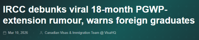 全网疯传"PGWP工签可延长18个月、4月30日截止", 移民部回应