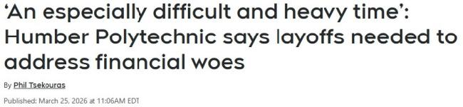 裁员还是来了。由于“自愿离职计划”未能填补财务缺口,多伦多Humber理工学院将继续推进裁员,多名教职员工和支持岗位面临被裁。