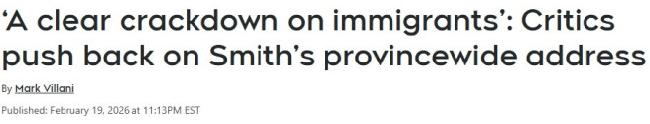 当晚外界迅速对此作出反应,批评者质疑她的政府在移民、经济压力和阿尔伯塔省财政问题上的叙事方式。