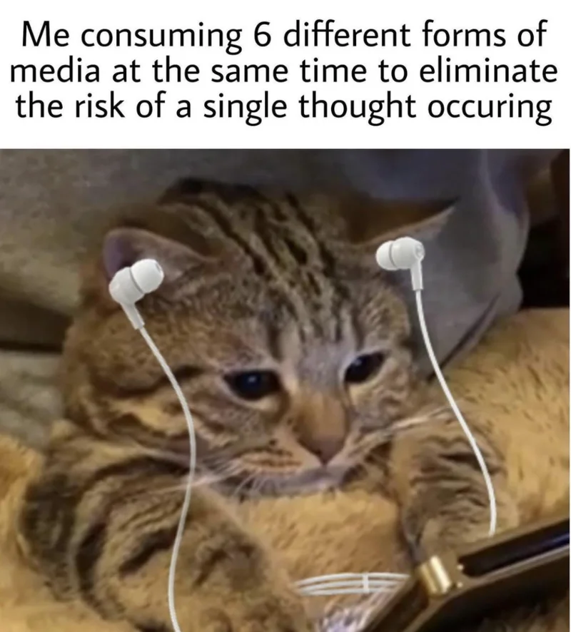 但Gen Z呢?他们在TikTok看到60个视频之后就说自己overstimulated。超市里人多了一点——overstimulated。教授拖堂了五分钟——overstimulated。室友在客厅打电话——overstimulated。