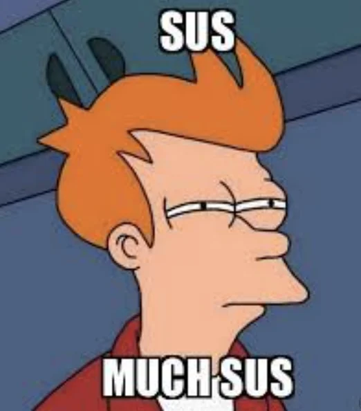 Suspicious的简称,专指“可疑/诡异”。当一个人行为很creepy、很奇怪就sus。最经典的sus使用场景仍然来自2020年的Among Us游戏大流行,到现在Gen Z还在坚持把它当口头禅。