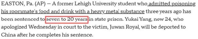 2021年,Yang承认了企图一级谋杀罪,被判处7至20年州监狱服刑,并需赔偿受害者近2万美元的医疗费用。
