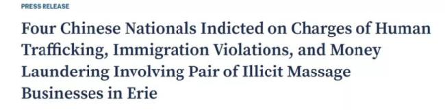 据检方指控,至少从2023年11月至2026年1月20日期间,被告在宾夕法尼亚州伊利市(Erie)经营两家水疗中心——“阳光水疗”(Sunny Spa)和“点点水疗”(Point Spa),但实际上这两家按摩店是卖淫活动的掩护场所。