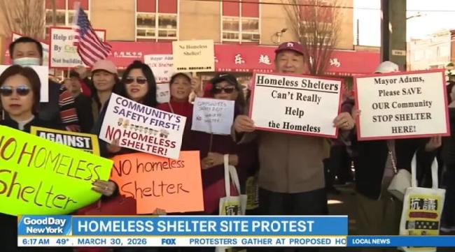 纽约布鲁克林Bensonhurst爆发大规模抗议活动。大批华人走上街头,数百名居民聚集在拟建男性游民收容所选址附近抗议,封堵道路并阻拦施工车辆进入,现场一度与警方紧张对峙。