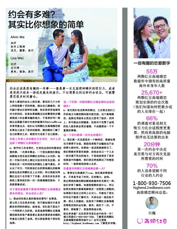 前北美最大交友网站“两颗红豆”线下高端婚恋服务总监