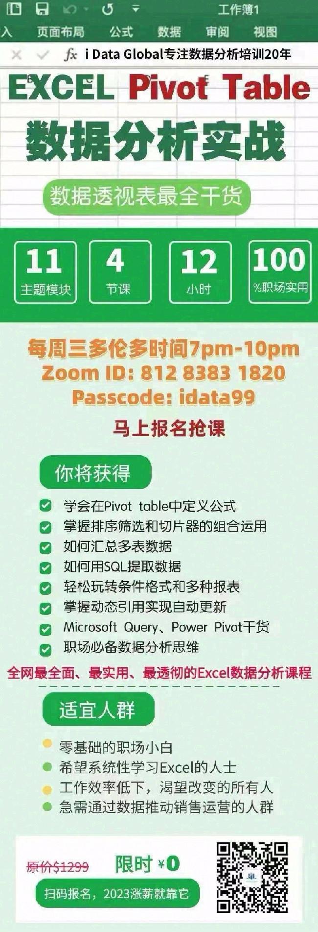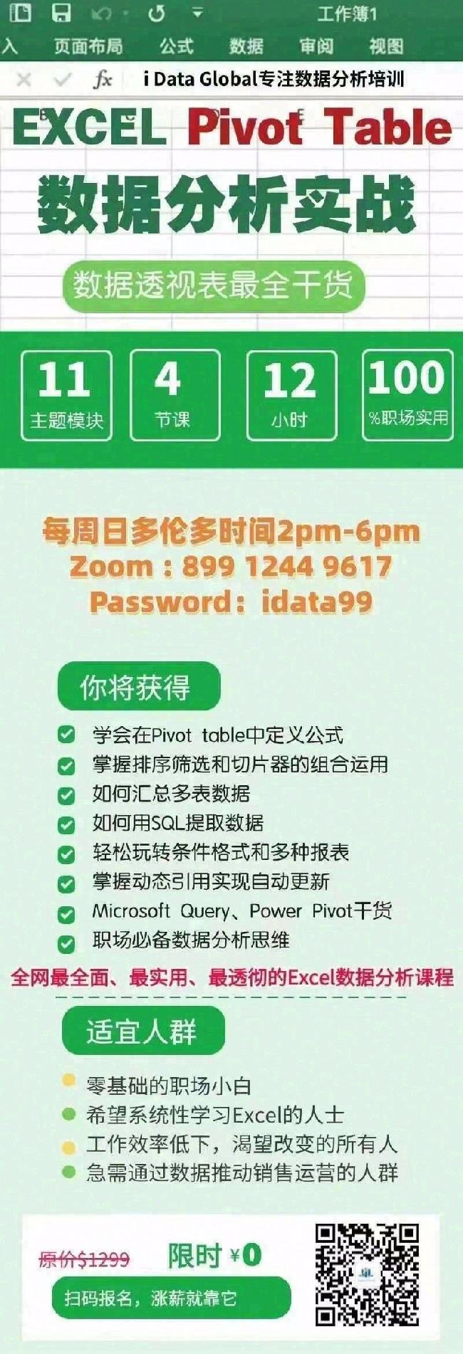 为了照顾大多数学员完全没有数据分析基础,i Data Global为了回馈新老学员的厚爱,持续推出免费基础课程,零基础入门,学完以后可以胜任 Junior Data Analyst 的职位。免费课程,付费服务和质量,深受学员好评。