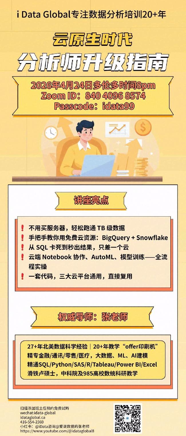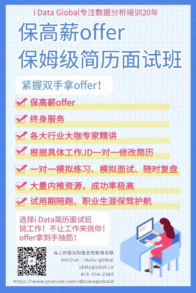 Idata Global:        A place to power your real abilityWechat:           idata-globalYoutube:         https://www.youtube.com/@idataglobal8/videosWebsite:         https://www.idataglobal.ca小红书:         idata咨询;爱说数据的张老师;孙老师带您拿offer