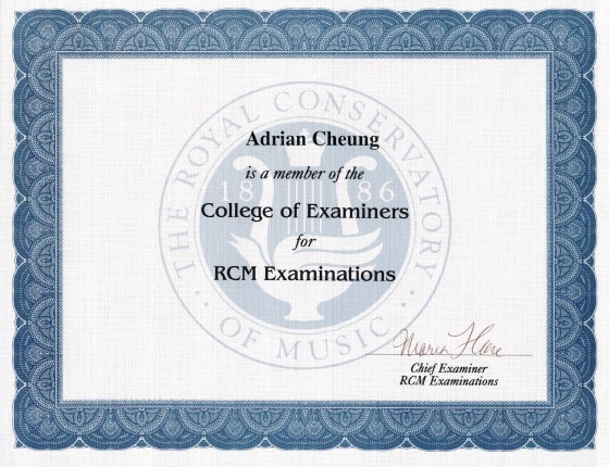 ►加拿大皇家音乐院考官 (Examiner,RCM College of Examiner)