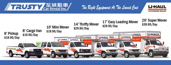 -世嘉堡自2010來連續10年U-Haul五星级高质服务货车租赁代理商,各類尺寸貨車出租,满足您搬家或者货运的需要,價錢最低最實惠,租金$19.95/天起。(尺寸分为:8尺,10尺,14尺,17尺,20尺,和26尺)