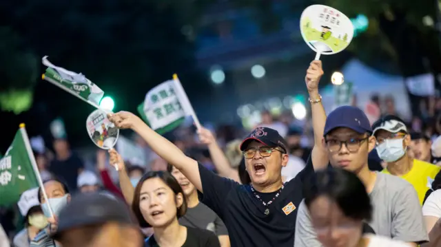 图像来源,AFP图像加注文字,“大罢免”首轮投票结果重挫绿营支持者士气。