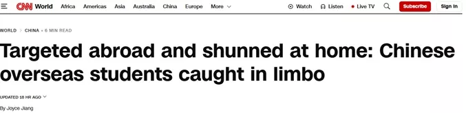 CNN:中国留学生为何陷入“里外不是人”惨况?