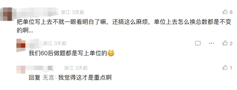 另有网友支招:把单位写上去不就一眼看明白了吗?