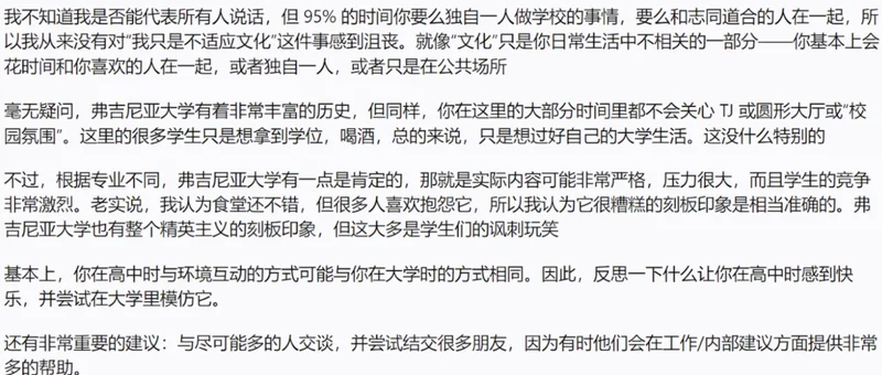 虽然精英主义在藤校并不少见,但对于UVA这个“不上不下”位置的学校,没有藤校这样世界顶尖的名声,去消解掉一部分精英主义带来的弊端,就,很难评。