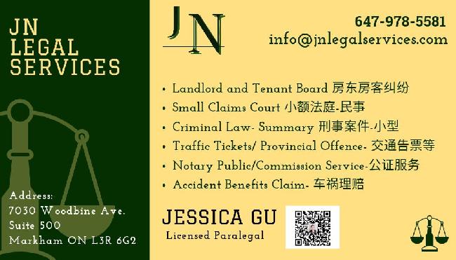 加拿大安省持牌法律顾问Paralegal-Jessica Gu 拥有10多年的加拿大法律背景