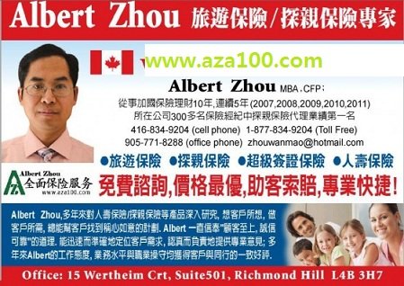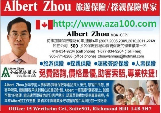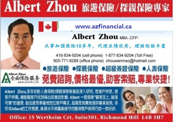 在线办理或电话(416-834-9204,1-877-834-9204, 905-771-8288),或email zhouwanmao@hotmail.com/albertzhou100@hotmail.com)购买;或来公司办理或我去您那里办理都可以。
