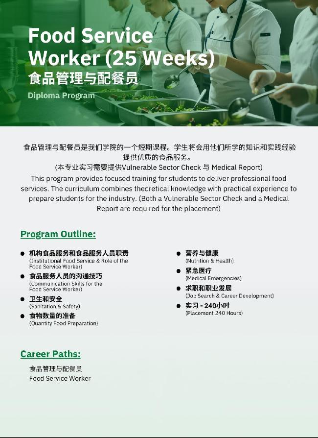 食品管理与配餐 (Food Service Worker)